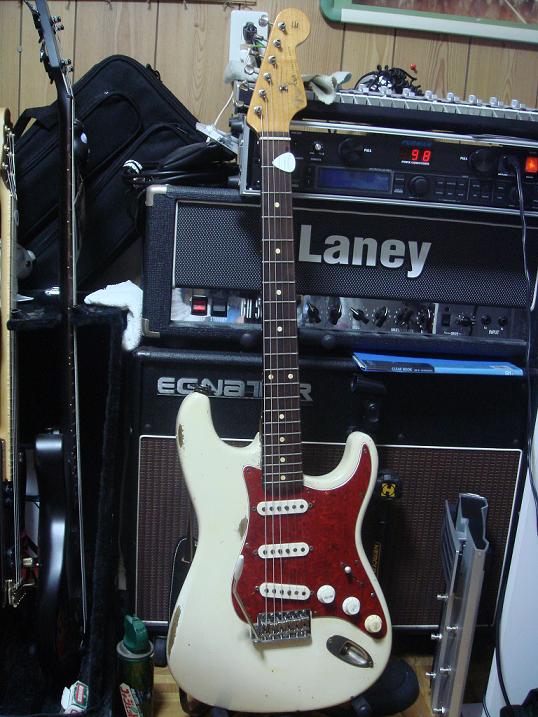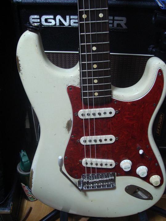 今のストラトの状態は、ボディーが83年。ネックが00年?内部配線はWEに、良く分からないでっかいコンデンサ!