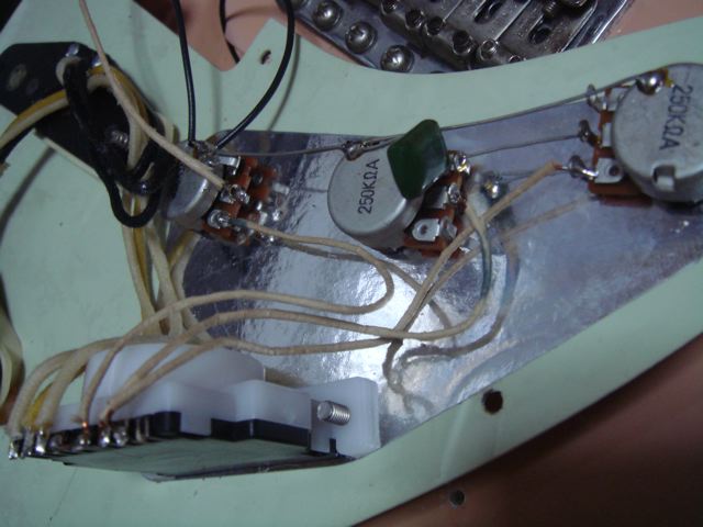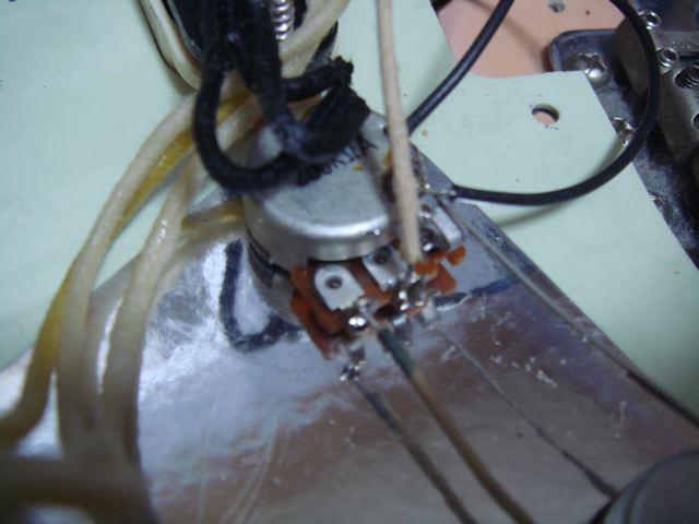 前回の配線変更ではピックアップから出てるところから全部変えたんですけど今回のはピックアップ以外の音に関係するところを変えました!配線はウエスタンではないけれど、ヴィンテージのUSEDです!